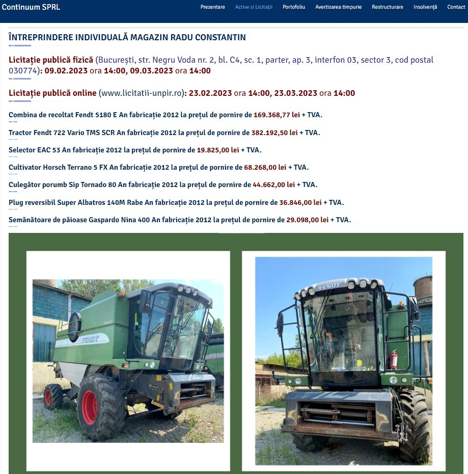 Utilaje agricole – Licitație publică