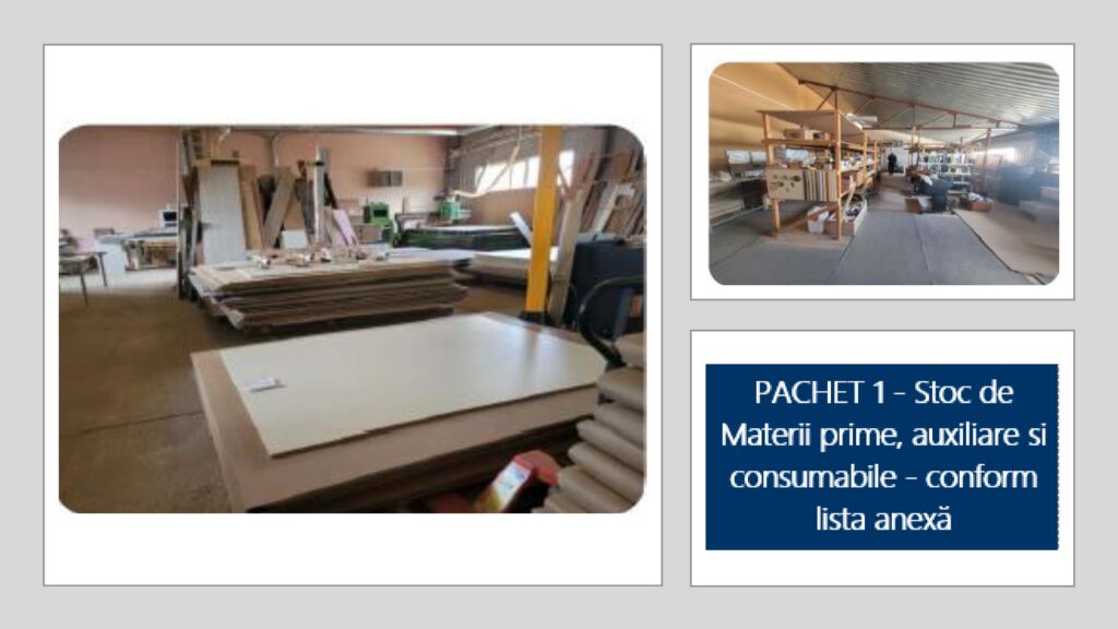 Pachet 1:Stoc de materii prime, auxiliare si consumabile, la prețul de pornire de6.297 lei + TVA