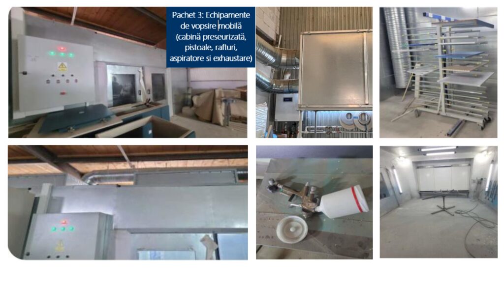 Pachet 3: Echipamente de vopsire mobilă (cabină preseurizată, pistoale, rafturi, aspiratoare si exhaustoare), la prețul de pornire de 169,608 lei + TVA