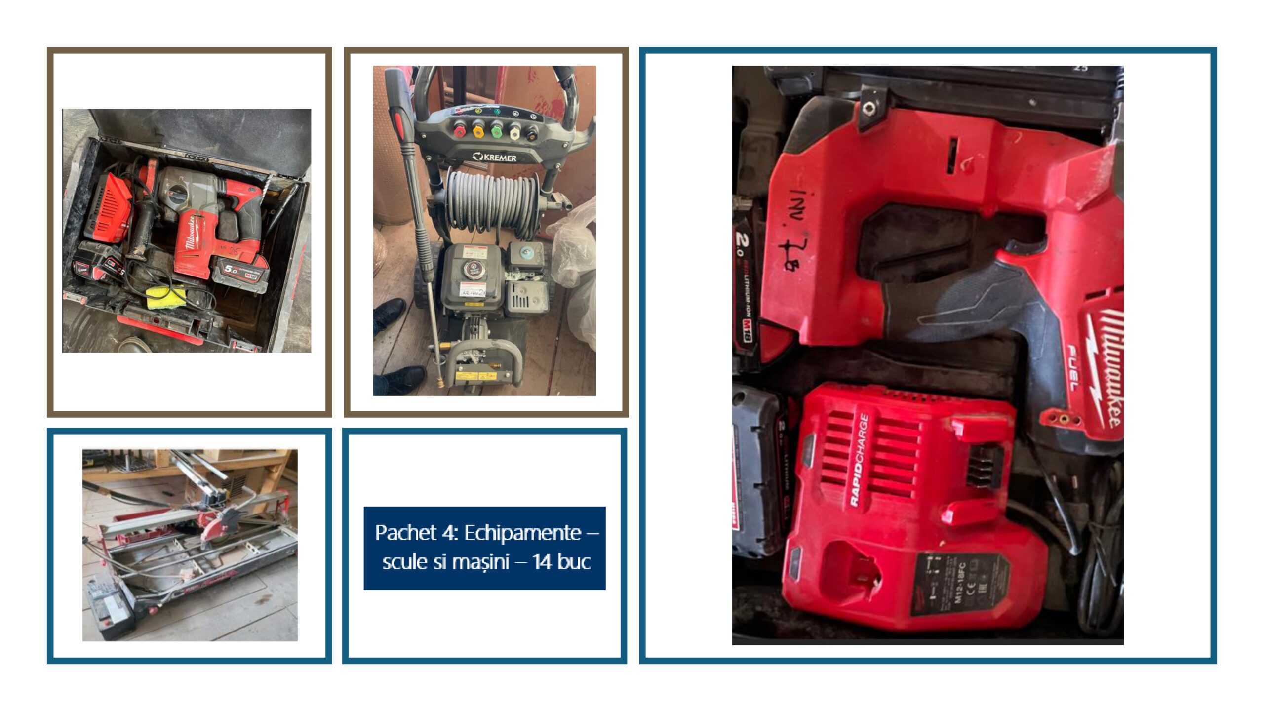 Pachet 4: Echipamente – scule si mașini – 14 buc, la prețul de pornire de 37,264 lei + TVA