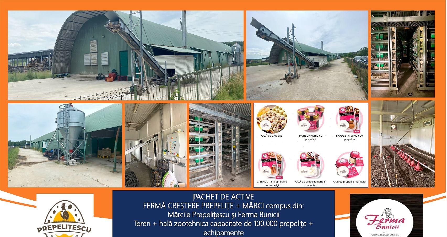 Pachet de active reprezentând ”Fermă creștere prepelițe și mărcile Ferma Bunicii Porția ta zilnică de sănătate 100% natural, Prepelițescu și Prepelițescu – Delicatese de prepeliță” la prețul de pornire de 775.277 lei