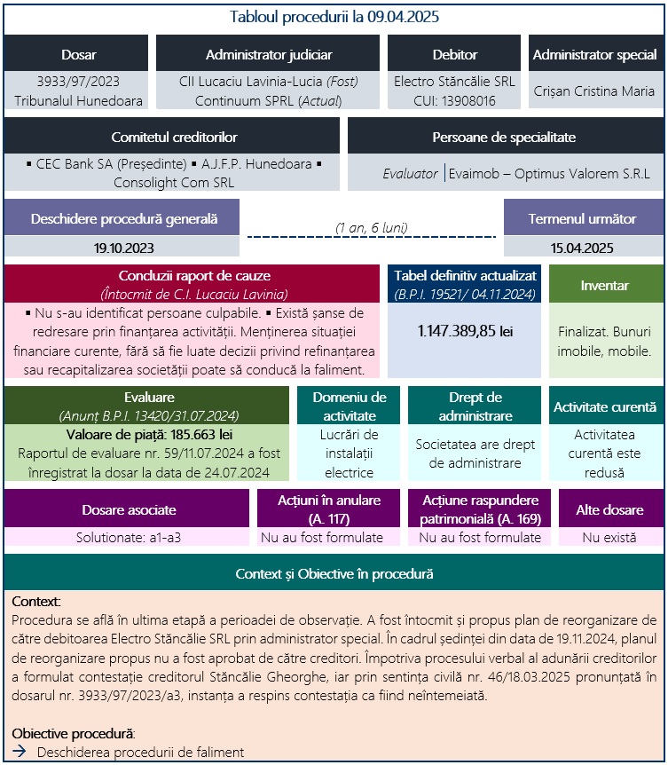 TABLOUL PROCEDURII