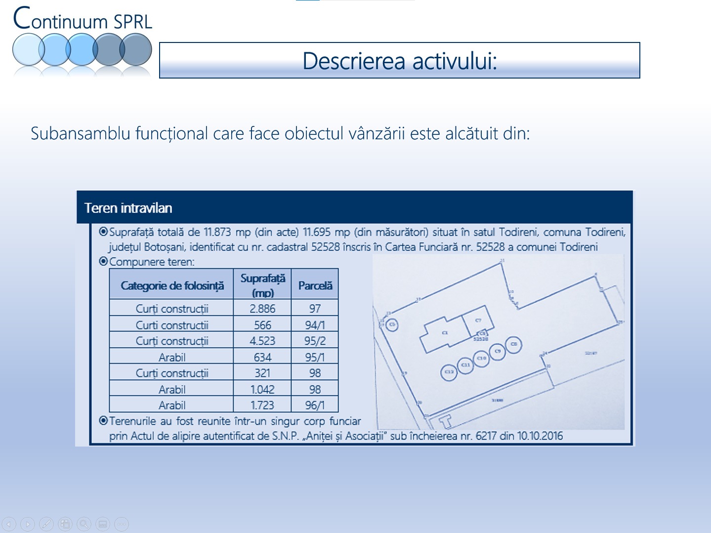 Documentația de înscriere va trebui comunicată administratorului judiciar cu cel puțin 24 de ore înainte de licitație. Persoanele interesate pot obține detalii suplimentare pe site-urile www.licitatii-insolventa.ro, www.continuumsprl.ro, la telefon 0745962558 / 0770790234 de luni pana vineri in intervalul orar 10.00-18.00, sau e-mail, office@continuumsprl.ro.