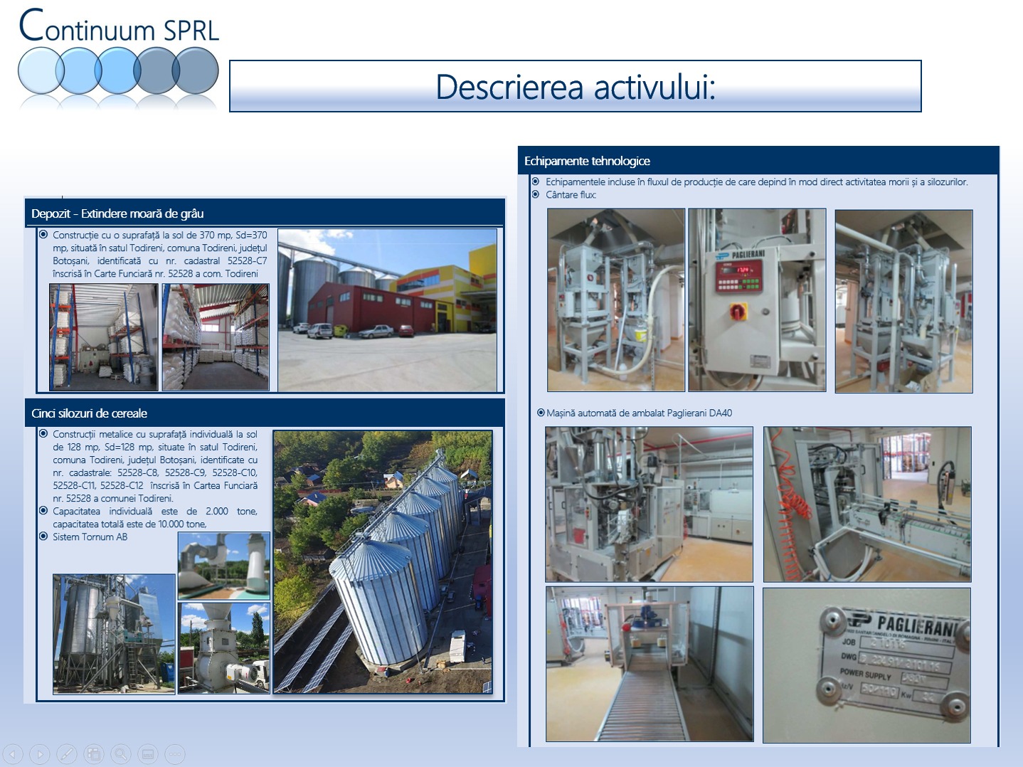 Subansamblului funcțional Moara Todireni compus din: moară de grâu (proiectată, produsă și pusă în funcțiune de Ocrim SPA Italia cu o capacitate de producție construită de 100 to/24 ore), silozuri (cu sistem Tornum AB, capacitate totală de 10.000 to. – 5 silozuri x 2.000 to.), parc fotovoltaic și birouri. Subansamblul este situat în comuna Todireni, Jud. Botoșani.