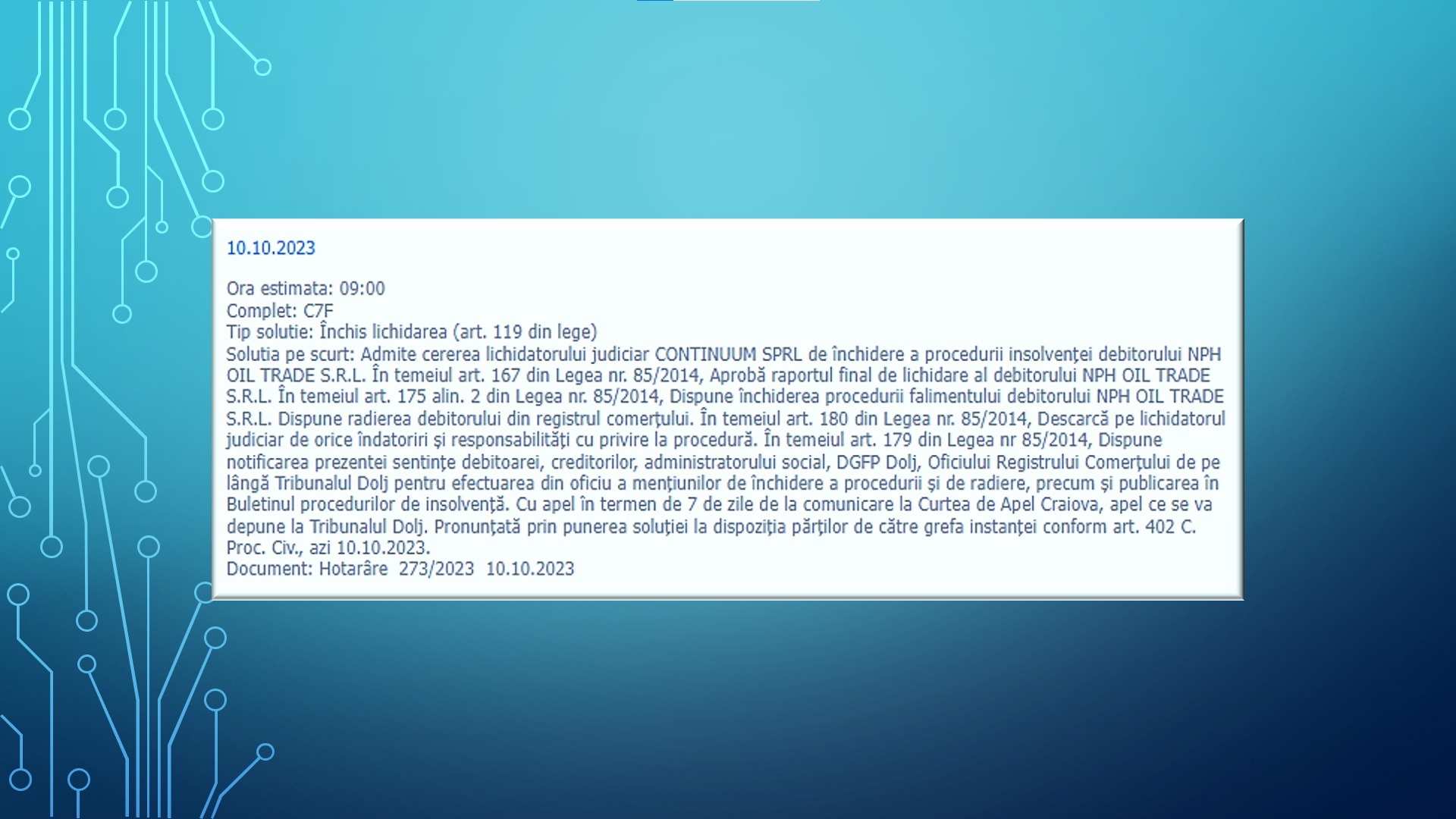 FIȘA DOSARULUI