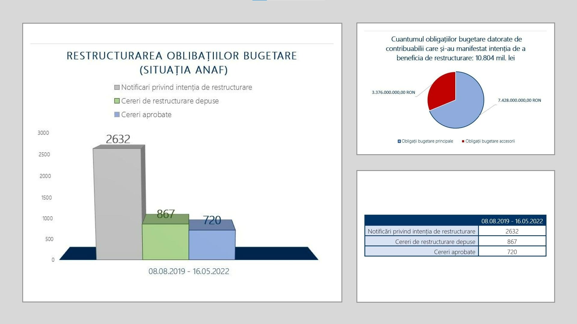 „La data de 16.05.2022 erau depuse un număr de 2.632 de notificări (termenul maxim de depunere fiind data de 30.09.2021) și un număr de 867 cereri de restructurare, din care aprobate sunt 720 cereri.